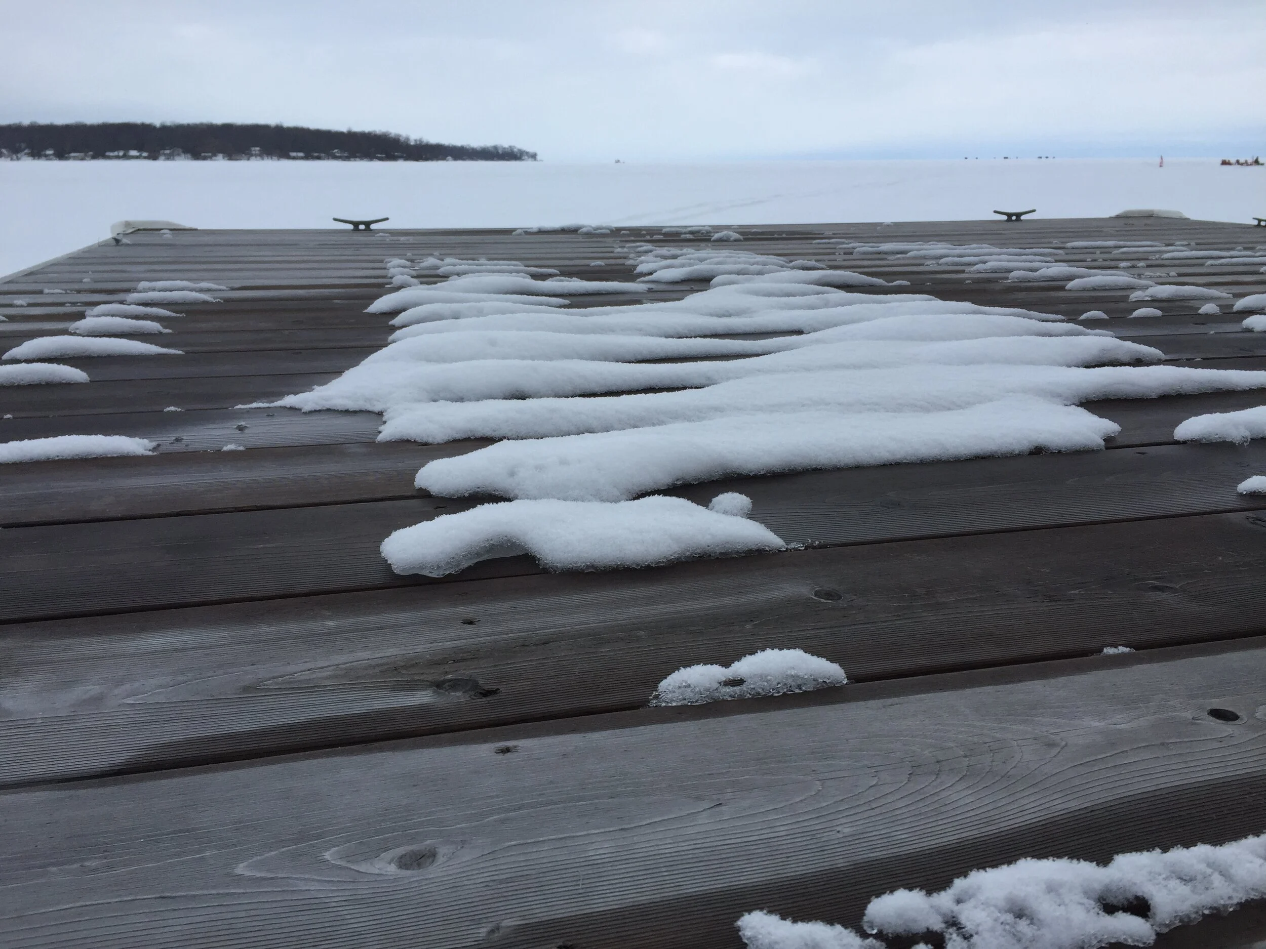 I struggled to manage to make it twenty feet off shore. I don’t think even my snowshoes would have been much help today. Drifts were almost three feet deep in places, I suppose it all blew off the docks!